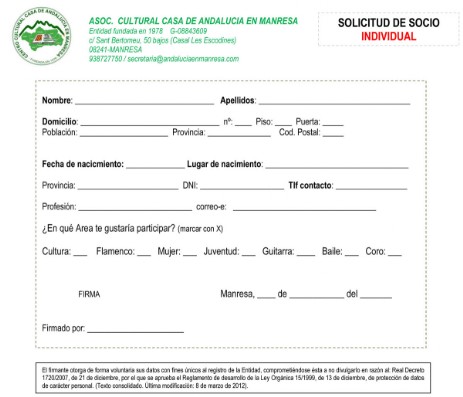 Descarga el impreso para convertirte en socio, rellénalo, escanéalo y envíanoslo al correo secretaria@andaluciaenmanresa.com.